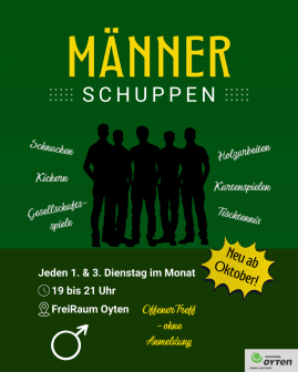 in den ersten Treffen selbst entscheiden. Sie gestalten also aktiv an der Ausrichtung des Männerschuppens mit. Wichtig ist, dass sie gemeinsam eine tolle Zeit haben.